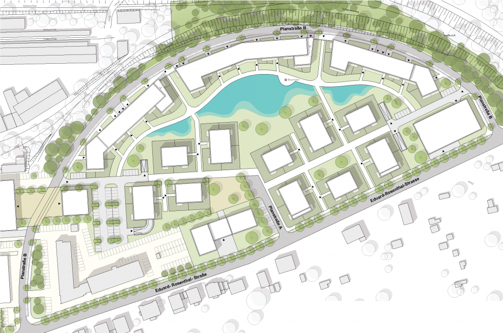 Auf einer Fläche von 5,8 Hektar hat Bräunlin + Kolb den Masterplan für ein neues Stadtquartier entwickelt. Es wird ein lebendiges Stadtquartier entstehen, das Wohnungen für Singles und Familien bietet sowie verschiedene Dienstleistungen: ein Ärztehaus, eine Pflegeeinrichtung und gewerbliche Nutzungen sind ebenso vorgesehen.
