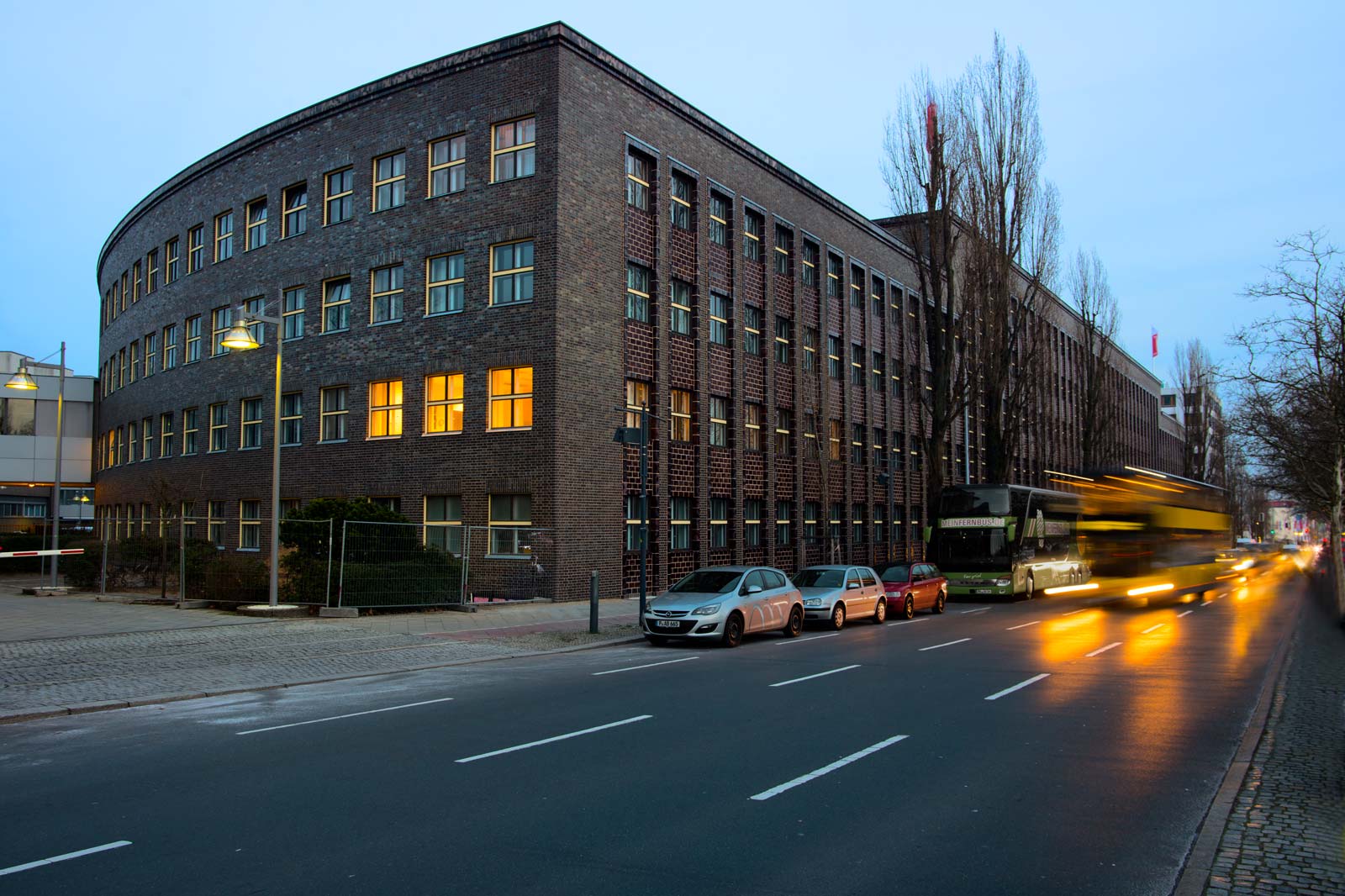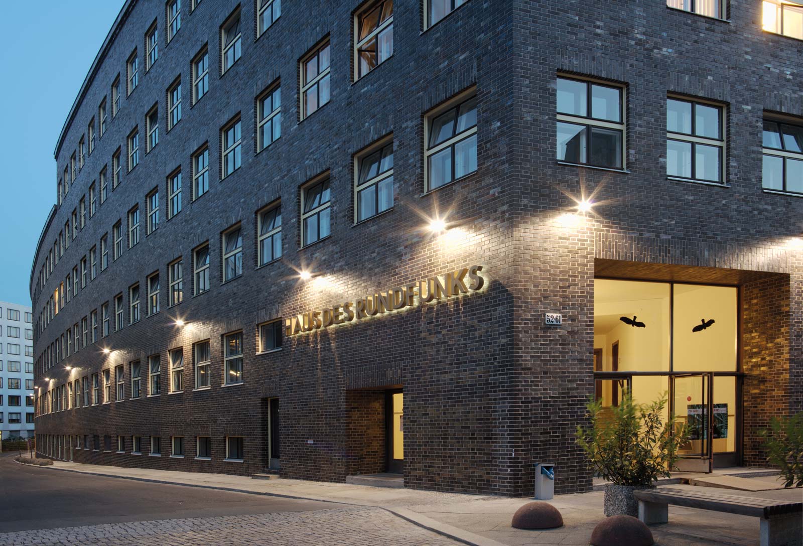 Das architektonisch und geschichtlich bedeutsame Haus des Rundfunks von Hans Poelzig wurde 1929 als eines der ersten Rundfunkgebäude Europas errichtet. Die dreieckige Grundrissform ermöglicht bis heute eine ideale Raumanordnung: Die Büro- und Redaktionsräume an den Aussenseiten schirmen die drei Sendesäle im Inneren vom Strassenlärm ab. Die Fassaden wiesen erhebliche Schäden auf, die eine Sanierung erforderlich machten. Die Hauptfassade entlang der Masurenallee setzt sich aus glasierten Keramikplatten und Klinkern zusammen, die Seitenfassaden vorwiegend aus Verblendklinkern.