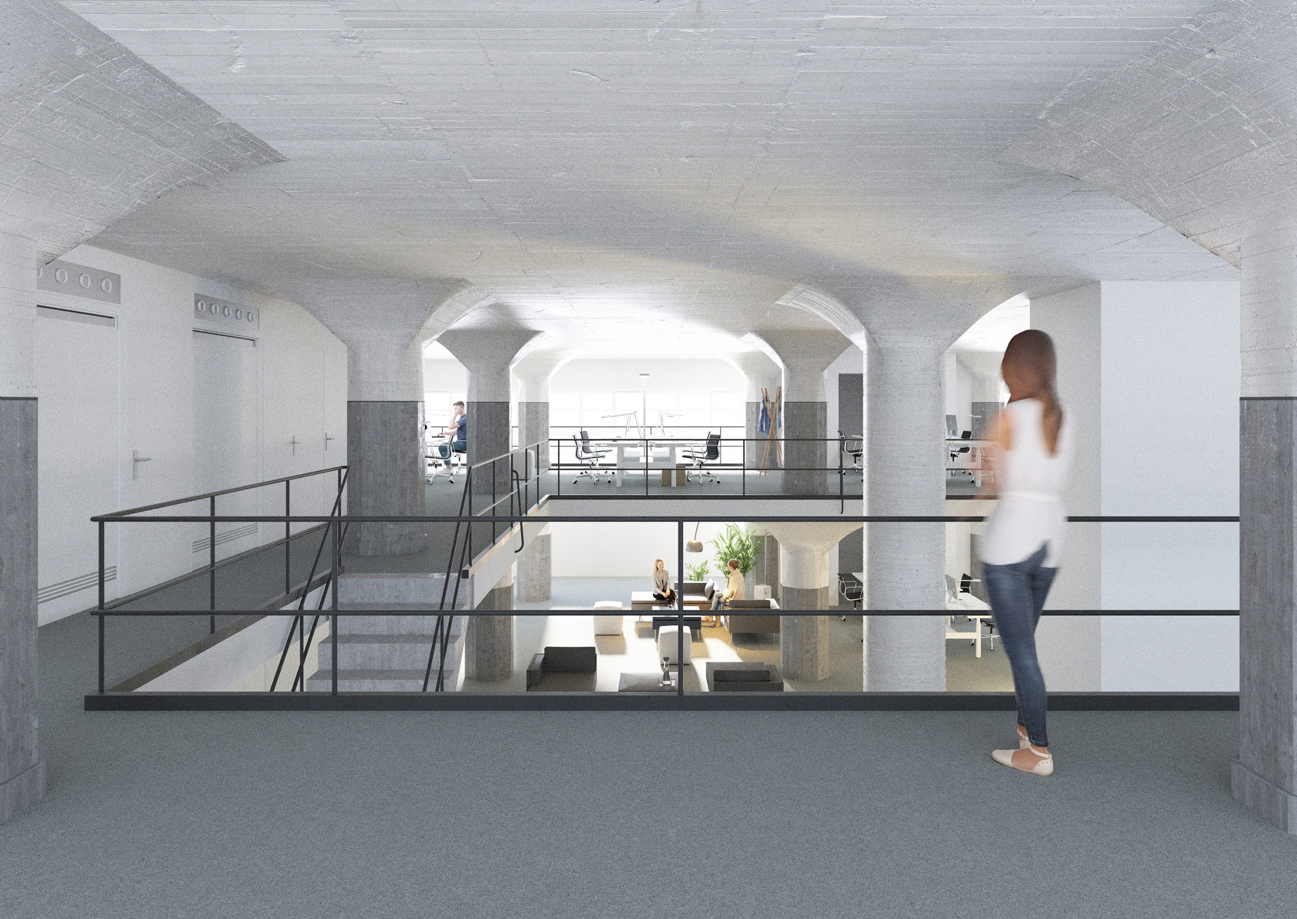 Das unter Denkmalschutz stehende ehemalige Lagerhaus soll zur Büronutzung in den oberen Geschossen und im Erdgeschoss zur Gastronomienutzung umgebaut werden. Der räumliche Charakter des Gebäudes als architektonischer Zeitzeuge soll dabei erhalten bleiben. BK Architekten fügt die für die zukünftige Nutzung erforderlichen Elemente in enger Abstimmung mit der kantonalen Denkmalpflege behutsam in die vorhandene Struktur ein und erneuert Bestandsbauteile nach dem historischen Vorbild. Dabei bleibt die offene Struktur der Galerien, die grosszügig belichteten Nutzflächen und das besondere Ambiente der Industriearchitektur bestehen und wird innovativ in die Zukunft transformiert.