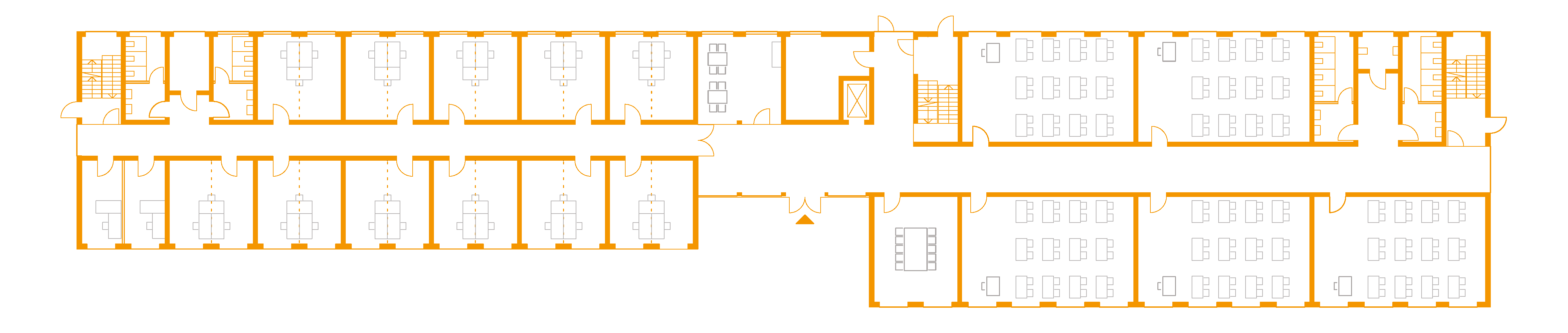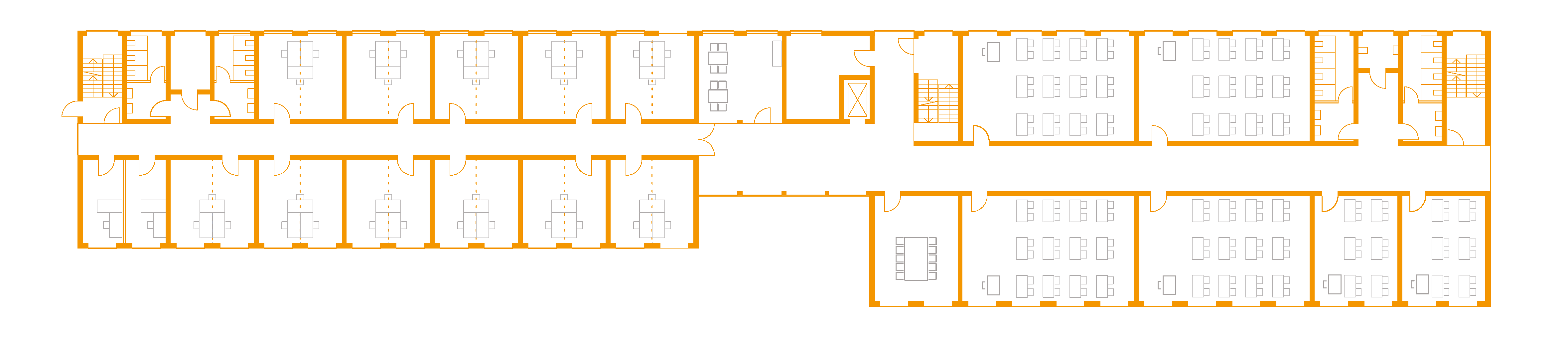 Der Ersatzneubau ist dreigeschossig ohne Keller geplant. Der Zugang des Gebäudes erfolgt über die Nordseite. Die Fassade der Eingangszone ist eingerückt und bildet äußerlich die Fuge zwischen den Gebäudebereichen. Eine gläserne Fassade öffnet das Gebäude zu einer Hofzone, die sich auch am gegenüberliegenden Bestandsgebäude wiederfindet. Die Eingangszone mit dem zentralen Treppenhaus und einem Aufzug gliedert das Gebäude in zwei Bereiche: Westlich schließt der Gebäudeteil der Seminarräume an und östlich der Bereich der Büroräume. Der Seminarbereich hat eine Gebäudetiefe von 17,50 Meter und der Bürobereich eine Gebäudetiefe von 13,80 Meter. Die Erschließung erfolgt über einen zentralen Flur, an dessen Ende jeweils die notwendigen Treppenhäuser und WC-Anlagen liegen. Pro Geschoss ist ein Besprechungsraum vorgesehen und zentral neben dem Haupttreppenhaus ein Aufenthaltsraum mit Teeküche. Das Gebäude wird behindertengerecht erschlossen und alle Geschosse werden über einen Aufzug erreicht.