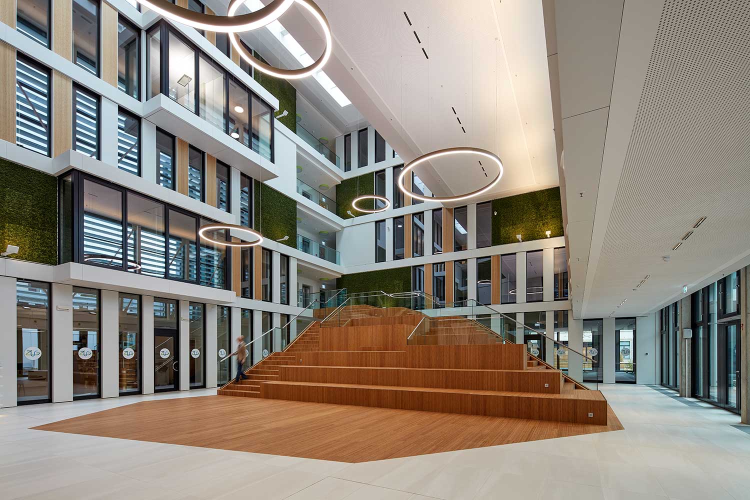 Das Projekt entsteht an einer der wichtigsten Nord-Süd-Achsen Berlins – der Müllerstrasse. Der direkt angrenzende S-Bahnhof Wedding bietet eine hervorragende Verkehrsanbindung. Geplant ist ein Wohn- und Geschäftsgebäude in Holz-Hybridbauweise – entworfen von E2A Architekten. Geschossdecken und Außenwände werden als Holzkonstruktion ausgeführt. Stützen, Unterzüge und die aussteifenden Treppenhauskerne, sowie das Untergeschoss und die Decke des Erdgeschosses, werden aus Stahlbeton errichtet. Die Fassaden zur Straße werden mit Photovoltaik-Paneelen versehen. Die Dachflächen werden als extensiv begrünte Retentionsdächer realisiert. Hier werden Photovoltaik-Elemente aufgestellt.