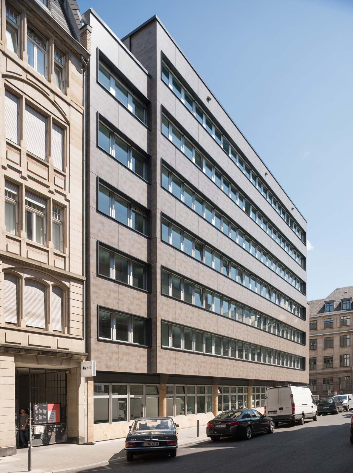 Das Büro- und Geschäftsgebäude wurde im Jahr 1998 errichtet und besteht aus einer Gewerbezone im Erdgeschoss und 1. Obergeschoss sowie einer Bürozone im 2.–5.Obergeschoss. Das Gebäude ist komplett unterkellert und verfügt über eine Tiefgarage mit PKW- und Fahrradstellplätzen. Die haustechnischen Anlagen sind im Untergeschoss und auf dem Dach untergebracht. Im Zuge von Modernisierungsmassnahmen werden die Büroetagen 2 bis 5 entsprechend der neuesten technischen Standards umgebaut. Die Fläche des ehemaligen Restaurants im Erdgeschoss und 1. Obergeschoss wird zu einem Konferenzzentrum mit sieben Konferenzräumen und entsprechenden Nebenräumen umgebaut. In der Tiefgarage werden neue Ladestationen für Elektrofahrzeuge sowie Ladepunkte für Elektrofahrräder mit abschliessbaren Batteriefächern errichtet. Die Arbeiten finden bei laufendem Büro- bzw. Geschäftsbetrieb statt.