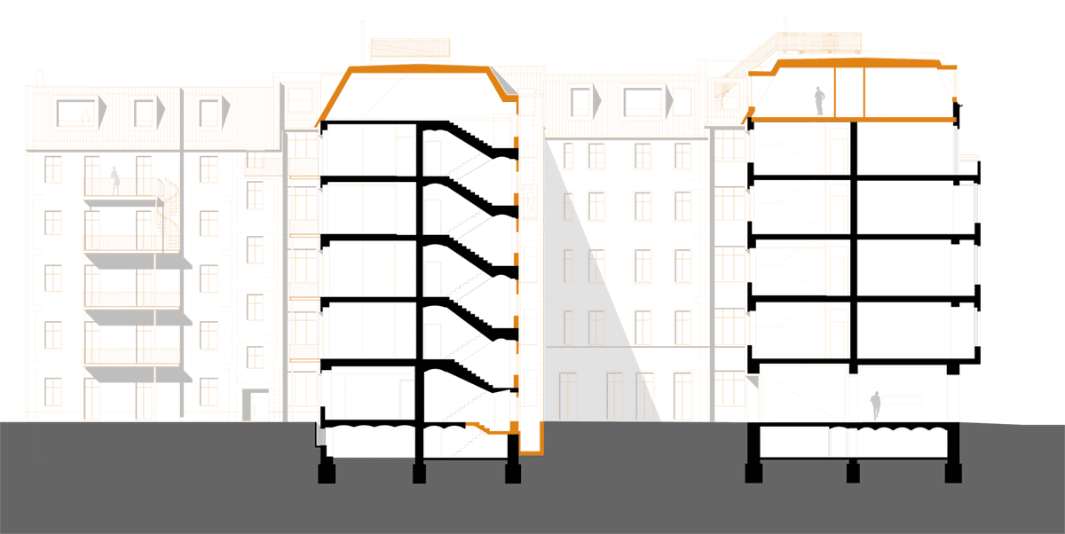 Dem Entwurfskonzept liegt im Gebäudeinneren die Idee der räumlichen Öffnung zugrunde. Die ursprünglich kleinen Wohneinheiten des Berliner Altbaus aus dem Jahr 1897 wurden zu grosszügigen Wohnungen zusammengelegt. Im neu errichteten Dachgeschoss befinden sich drei neue Wohnungen, eine davon zweigeschossig. Balkone und Aufzuganlagen wurden installiert und der Eingangsbereich neu und zeitgemäss gestaltet. Die Aussenraumgestaltung lehnt sich hingegen an die Berliner Tradition an, mit Natursteinplatten als Laufbelag und Mosaikpflaster als Einfassung. Die Fassadenerneuerung stellt ebenso den ursprünglichen Charakter her und entspricht nunmehr heutigen energetischen Anforderungen. Neben der Behebung erheblicher Schäden sorgt die umfassende Sanierung für einen gehobenen Wohnstandard.