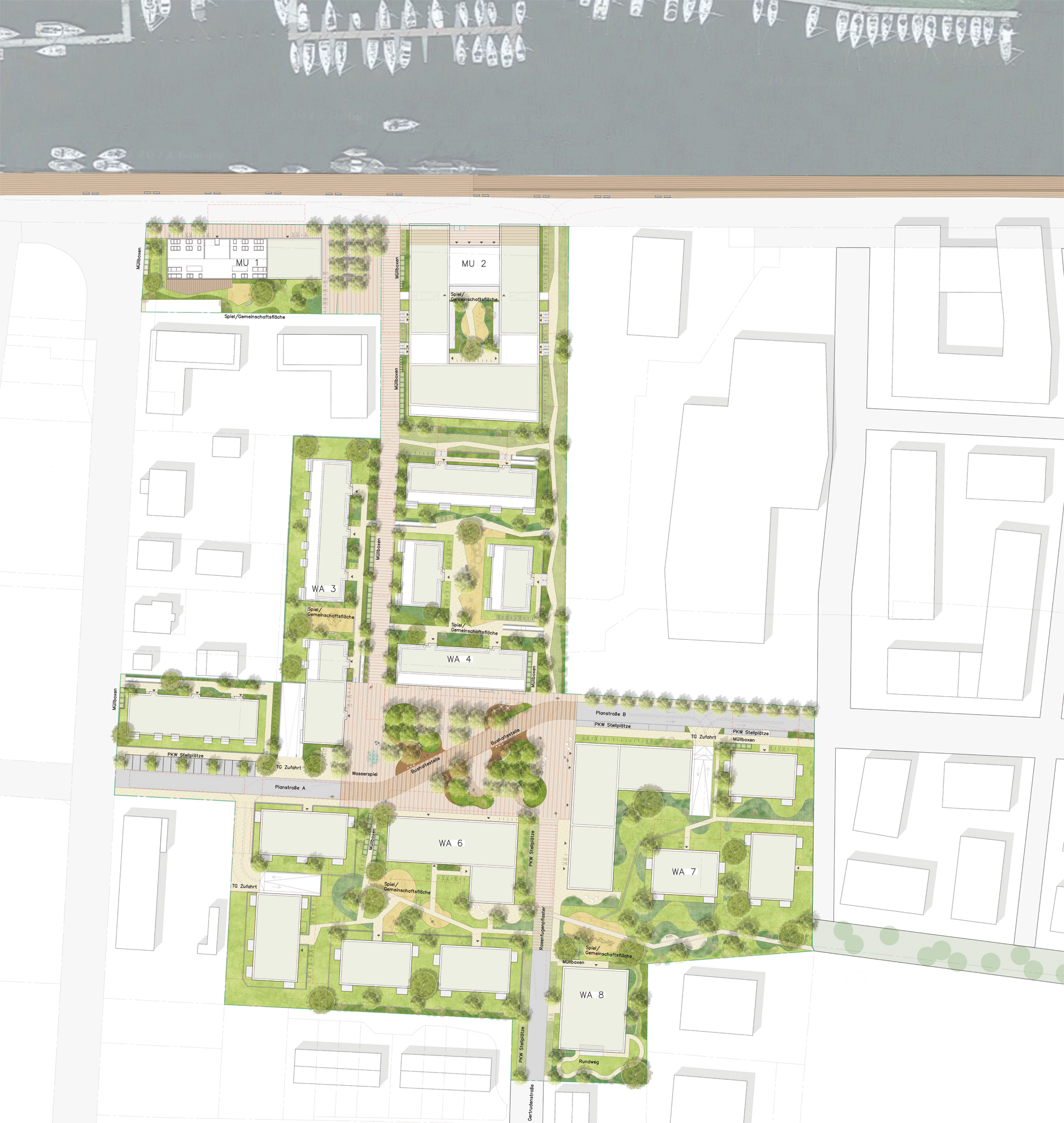 Städtebauliche Entwicklung mit ca. 520 Wohnungen und Appartements mit Tiefgaragen und Gewerbeflächen