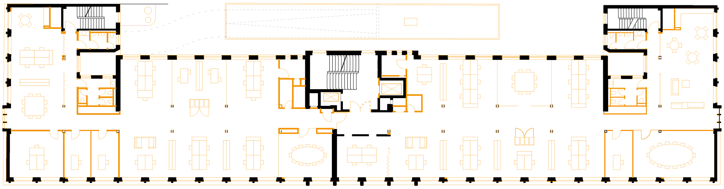 Die Mietflächen werden nach unserer Planung komplett erneuert. Neben der Neustrukturierung der Zugangssituation, der Sanitärkerne, der brand- und der schallschutztechnischen Massnahmen steht besonders die Modernisierung der haustechnischen Ausstattung im Fokus.